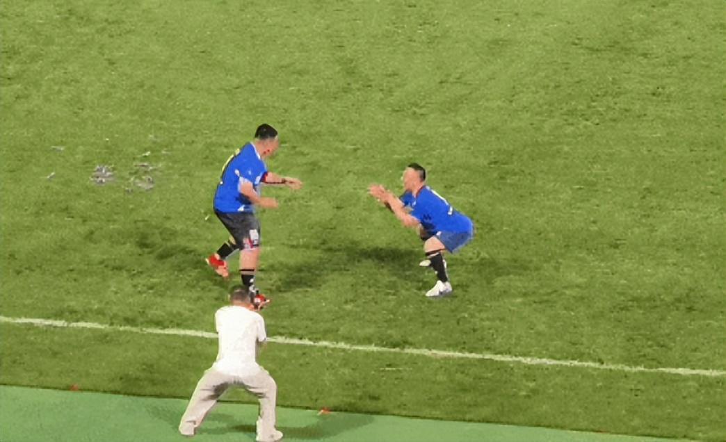 即便如此,他依然坚持踢完了全场,更令人意外的是,尽管体能不济,他却在比赛中贡献了一记助攻,帮助球队攻破对手球门,每当己方破门,赵大牛都激动不已,甚至会在镜头前即兴表演,他与另一位田姓明星球员几乎承包了整场比赛的“娱乐性”。